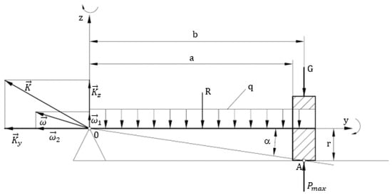 Figure 2 presents the scheme of the bowl’s loading with the roller assembly and its axis, where it has been assumed that the point of tangency A of the roller with the background is in a given moment motionless, and the straight line connecting the points O and A is the temporary axis of the roller’s rotation.