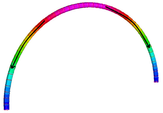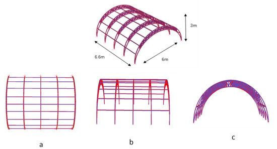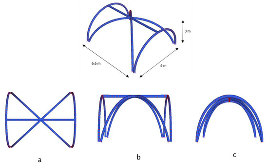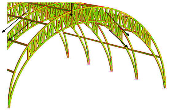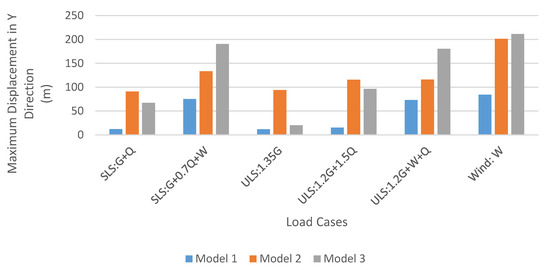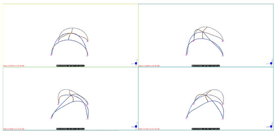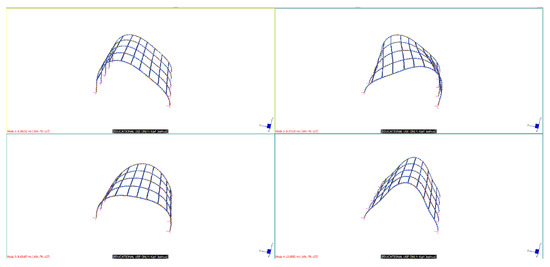 Figure 20 presents a possible model of the failure shape of model 2 due to the effect of the applied dynamic wind loading. As illustrated, a combination of bending and twisting can be found as the main failure modes in the simulated structures. The extracted modes are significantly important when it comes to designing suggested frames because of the effect of the dynamic wind loading. Additionally, the suggested concept might be extended into calculating and predicting the structural responses due to the influence of the buckling and post-buckling analysis of the simulated frames.
