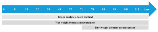 Various techniques were used in this study to quantify the marine fouler organisms (adhered to the surfaces of the concrete specimens) and assess their visual appearance: an image-analysis-based method [61,64,78,79], and wet-/dry-weight biomass measurement [80,81,82] (Figure 7).