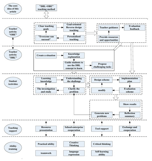 The goal of outcome-based education (OBE) is the learning outcomes of students, emphasizing that what students have learned and whether they succeed is more important than how to learn and when to learn. According to the different characteristics of students, teachers provide suitable learning opportunities for each student, let students complete challenging tasks in the form of group cooperation, and cultivate students’ practical ability. Teachers play a guiding role in this process, using demonstration and strategies such as grouping, evaluation, and feedback that help students to achieve expected results [30]. From this point of view, design-based learning (DBL) and outcome-based education (OBE) have many similarities. Combining the two effectively and applying them to teaching can improve the shortcomings of traditional teaching methods effectively and achieve good results.