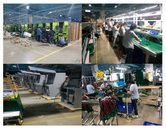 (b) Teachers put forward requirements for this subject, combined with the concept of outcome-based education (OBE), guided by the expected final learning results of the students, asked for the student’s final achievement, and clarified the goals. For example, the efficiency of the production line should be increased by 30%, the waste in the field must be identified and reduced, the work of the operators should conform to the principle of action economy, and the students should master and apply the content of basic industrial engineering at the end of the project.