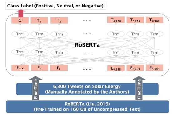 - Applying RoBERTa, a state-of-the-art language model as of 2021, with three classes (positive, neutral, and negative) achieves 80.2% accuracy. Our solar-specific language model, fine-tuned with 6300 manually annotated tweets, generates highly competitive results compared with other BERT-based sentiment analyses with three classes [58,85].