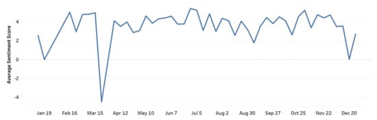 Figure 5 illustrates the temporal variation in sentiment for the one-year period of Twitter data collection. This figure demonstrates that events can potentially shift public opinion on solar energy. The sharp decline in sentiment score on 23–25 March is motivated by congressional discussion on the inclusion of tax incentives for renewable energy in the Coronavirus Aid, Relief, and Economic Security (CARES) Act of 2020. As a robustness check, we tested an alternative model excluding the tweets from 23–25 March. The main findings from the alternative model were consistent with the original model, except for the estimated effect of RPS. In the alternative model, RPS is statistically significant in explaining solar sentiment in both the bivariate and full models.