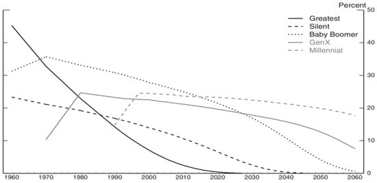 - Fry, R. Millennials Surpass Gen Xers as the Largest Generation in U.S. Labor Force; Pew Research Center: Washington, DC, USA, 2015; Available online: http://www.pewresearch.org/fact-tank/2015/05/11/millennials-surpass-gen-xers-as-the-largest-generation-in-u-s-labor-force/ (accessed on 15 February 2021).