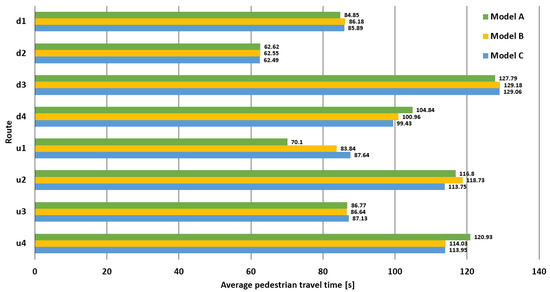 For the purposes of the analysis of pedestrian movement in the monitored transit node, three models representing different states of traffic load were created (for more details, see other subsections):