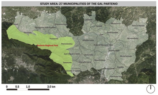 In 2008, a Local Action Group—referred to as Gruppo di Azione Locale (GAL) Partenio [80]—was established to support communities in promoting local resources for sustainable development. This organization has been working to stimulate cooperation among different municipalities and define a shared vision of local development for several years. Thanks to several projects, GAL Partenio has involved local communities in the identification of new development opportunities for the area. During this process, different issues have been investigated, and several relevant objectives have been identified for building a territorial process of valorization.