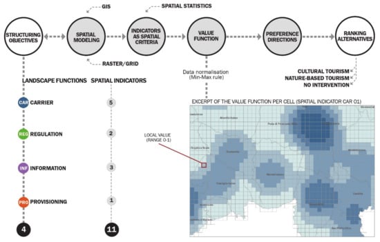 Furthermore, the operational framework of multicriteria decision analysis (MCDA) [60] has helped decision makers (DM) to make strategic decisions efficiently and define concrete solutions [61] through the monitoring, management, and assessment of the landscape’s resources in multidimensional contexts.