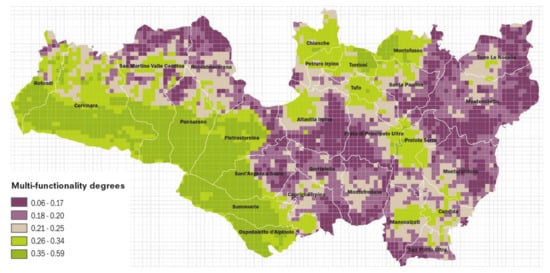 Furthermore, to better identify a shared strategy in which all the municipalities can take part according to their territorial potentialities, significant attention was paid to the spatial representation of these indicators, in order to analyze and localize the multifunctional values of the territory.