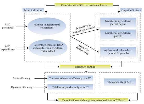 This study used the evaluation system and calculation model, which were referred from Wang’s methodology [46], to evaluate the capabilities of ASTI for G20 countries. For the details of the efficiency measurement, please refer to Figure 2.