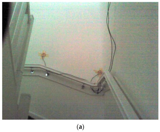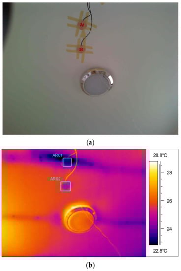 ZP1 heat flux measurement location on stairway wall (a) with thermal image (b).