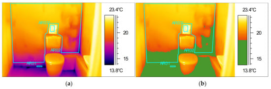 Ground floor WC of ZP1, (a) thermal image, (b) thermal image with isotherm.