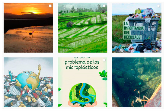 This work focused on the educational use of Instagram. This social network, given its eminently visual, intuitive, and simple character, is an innovative resource for education, as evidenced by works such as that of Romero-Rodríguez et al. (2020) [55]. For this reason, we used this support for the dissemination of these visual messages, complemented with texts about content related to sustainability.