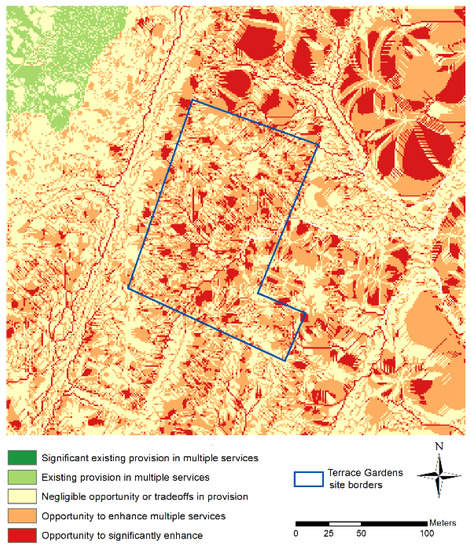 Considering the trade-off tool, which was used to examine erosion/flooding/nitrogen, the results suggest that there are opportunities to enhance multiple services in approximately 50% of the site (Figure 8).