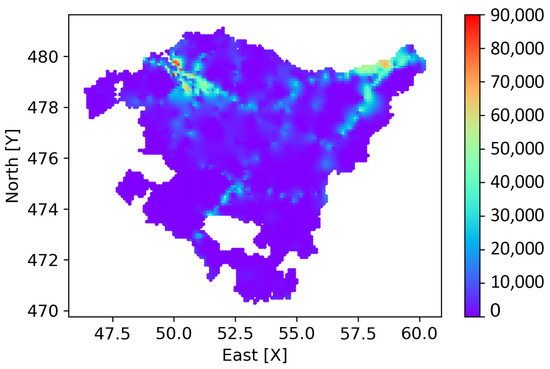 The variables AADT and AADHT are continuous and high-dispersion variables as it is shown in Table 2, and a large amount of measurements escaped from the mean in both variables. One may think the observations that escaped from the mean could be outliers. Nevertheless, they are values measured in the northern sector of the BAC (specifically in the provinces of Biscay and Gipuzkoa) where the AADT is higher. This occurs because the AP-8 freeway and the N-634 highway that connect the two major cities of the region, Bilbao and Donostia/San Sebastián, are located in the north of the region, on the coast. Additionally, the urban freeways around the metropolitan area of these two cities also concentrate high traffic volumes around them. Hence, taking into account the spatial positions that the highest values of the variables show, the decision to keep the entire sample was made, not eliminating or transforming those values called outliers.