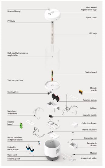 - Katsikopoulou, M. Algae Grower Home Device Can Satisfy Average Adult’s Daily Nutritional Needs. Available online: https://www.designboom.com/design/algae-grower-home-device-average-adult-daily-nutritional-needs-07-13-2020/ (accessed on 7 January 2021).