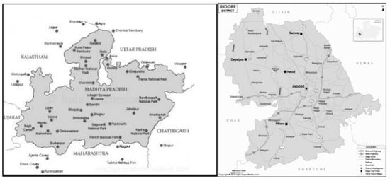 - Indore District Map. 2021. Available online: https://www.mapsofindia.com/maps/madhyapradesh/districts/indore.htm (accessed on 27 February 2021).