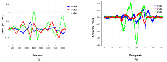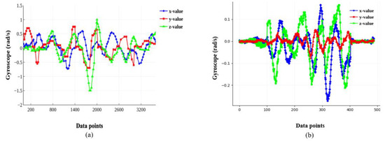 - Covariance Matrix Calculationwhere represents the accelerometer readings and represents the gyroscope readings. Note that and .
