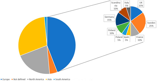 Information about the region of study of the selected articles is shown in Figure 2. Analysis of the data reveals that Europe dominates the garment end of lifecycle literature with just under half of the research (49 percent) originating from the region. The geographical region of the analysed articles is spread over 15 countries. It is important to note that the European countries cover sub-regions of Scandinavia with several research studies stemming from Sweden. This is followed by the UK, France, Finland, Spain, Poland, Germany, and Italy. Whilst 32 percent of the articles did not disclose the region of study, Europe is followed by North America, occupying 10 percent, Asia contributing to 7 percent, and South America with 2 percent. Neither the African nor Australasian region were represented in the study.
