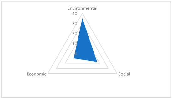 Figure 3 presents the distribution of the reviewed papers concerning the three dimensions of sustainability. It is observed that the environmental dimension is the most studied within the analysed texts, as it was covered in all the papers. The environmental criterion included the diversion of waste materials from landfills, reduction in carbon dioxide emissions, and energy and water preservation. Social dimensions were addressed by 17 of the 35 articles studied. Issues such as job provision and health and safety measures were discussed within this dimension. The economic dimension was the least discussed, covered in only 10 of the 35 articles. Whilst most papers did not specifically mention this criterion, it seemed to be implied, as most objectives for the organisation addressed profitability and sustained economic development.