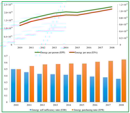 | Emergy purchasing ratio (EPR) | 4.99 × 10−1 | 5.47 × 10−1 | 5.72 × 10−1 | 5.78 × 10−1 | 5.85 × 10−1 | 5.85 × 10−1 | 6.12 × 10−1 | 6.25 × 10−1 | 6.46 × 10−1 |