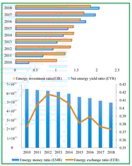 | Emergy exchange ratio (EER) | 3.77 × 10−1 | 4.04 × 10−1 | 4.18 × 10−1 | 4.14 × 10−1 | 4.06 × 10−1 | 3.81 × 10−1 | 3.89 × 10−1 | 3.77 × 10−1 | 3.74 × 10−1 |