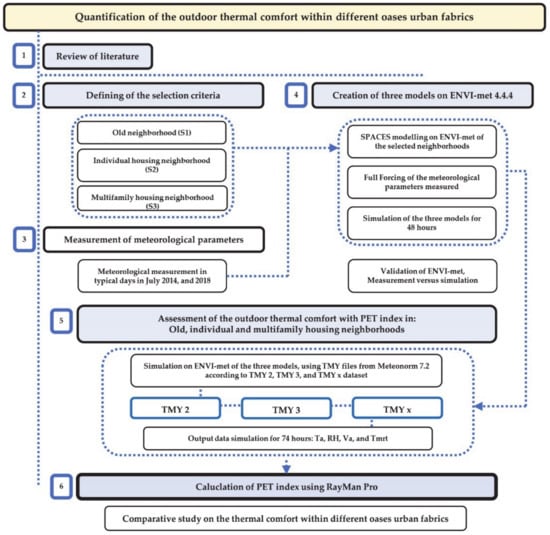 After the selection of the study sites, we followed several steps to quantify the outdoor thermal comfort: