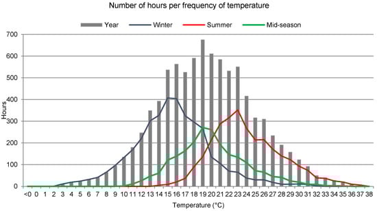 Frequency of the temperatures per year and seasons in Porto Alegre, based on Roriz [18] dataset.