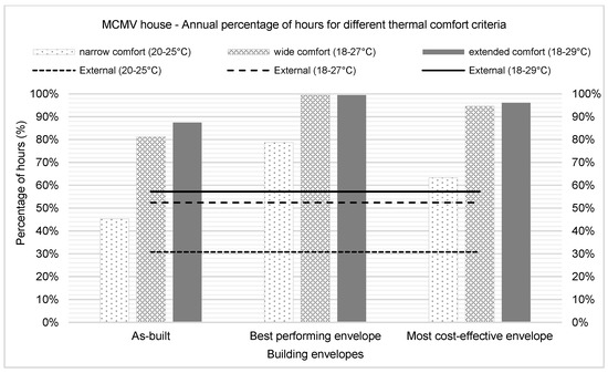 MCMV House—percentage of thermal comfort for different thermal comfort criteria.