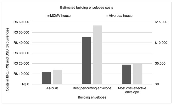 The cost analyses initially consisted of comparing the costs of as-built and optimised building envelopes for the case studies. The costs of the building envelopes were calculated based on the web database Tabela de Composições e Preços para Orçamentos (TCPO), ‘Table for Pricing Engineering and Construction Projects’ in English. TCPO is a 50-year old Brazilian construction database developed by PINI publishing of more than 5 thousand typical construction composition prices for each Brazilian state [59,60]. The web database is updated on a monthly basis based on the construction cost indexes at each location.