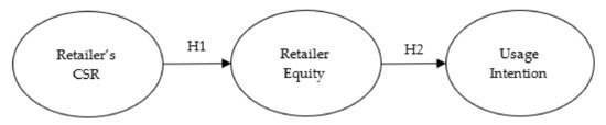 Most of all, considering the topic of this study, it is important to identify whether improved retailer equity through CSR activities has a structural, causal relationship that increases customer intention to use the retailer’s products. Consumers’ decisions on purchasing are influenced not only by tangible attributes such as price and quality, but also by intangible attributes such as company reputation and brand personality that can be built through CSR activities [49]. Therefore, based on these studies, enhanced retailer equity through CSR activities may increase the customer’s willingness to use the retailer.