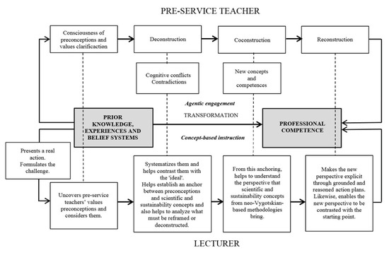 To train literate citizens from this broad perspective, we must (re) think the school and the teaching staff functions, who according to Calero, Mayoral, Ull and Vilches [10], are the responsible agents for promoting this transformation. In this sense, UNESCO [11] (p. 7) stresses that “it is not only to integrate content such as climate change, poverty and sustainable consumption [..] but also to create interactive and student-centered teaching and learning contexts.”