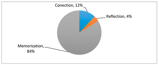 At all levels, except in 1st grade, tasks that are categorized within the memorization demand prevail (84%), that is, they are tasks that require direct application of the processes or knowledge previously exposed in the lesson (Figure 9).