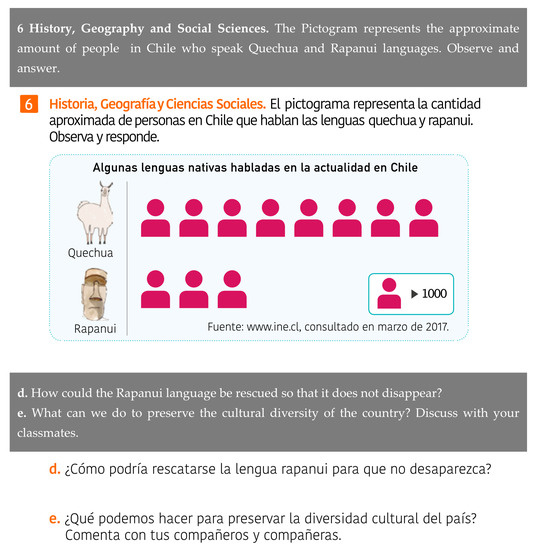 By way of example, Figure 8 shows some tasks from lesson 1 from the 4th grade of primary school, which has been categorized as articulation level 2 because, despite referring to different aspects of recycling, it is not developed in a continuous way: throughout the same lesson, other situations or contexts not related to this aspect are worked on, such as favorite subject, sports workshops, Christmas bread, social networks, Rapanui language, and so forth. These topics and works are not linked to recycling, so the student develops a “discontinuous” work, which is why the lesson has not been categorized at level 3.