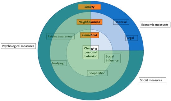According to Thaler and Sustein [27] there are three traditional instruments for influencing behaviour: legislation, raising awareness, financial incentives. They added a fourth instrument: ‘nudging’, which is to alter people’s behaviour in a predictable way without forbidding any options or significantly changing their economic incentives. Besides, less psychological, more sociological instruments can be used: helping people or organizing people (see also Figure 2). This asks for a more two-way interaction [4].
