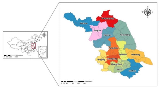 In this paper, we take counties of Jiangsu Province China (Figure 1), a typical coastal plain region, as the basic research unit. We aim to explore the unbalanced development characteristics of regional urban spatial forms. The objectives of this paper are (1) to identify the unbalanced development characteristics and compare the differences among the urban spatial expansion size, development intensity, and distribution aggregation degree; (2) to identify their different driving mechanisms by using modern spatial analysis tools and data on physical geography, economy, and society; and (3) to put forward a differentiated regional optimization adjustment strategy.