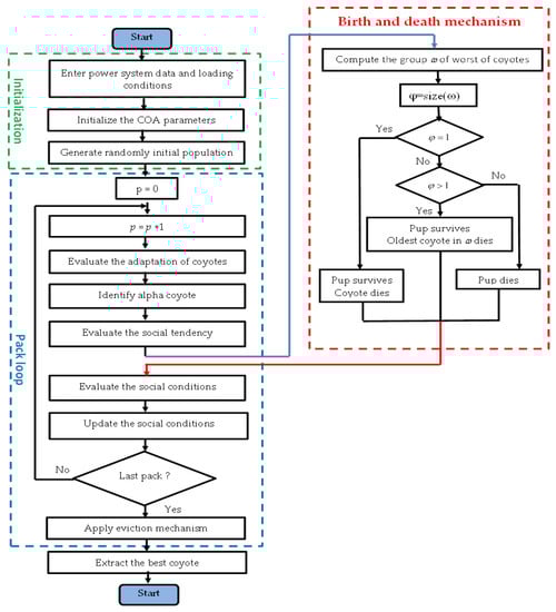 Flowchart of coyote optimization algorithm (COA)-based optimization method.