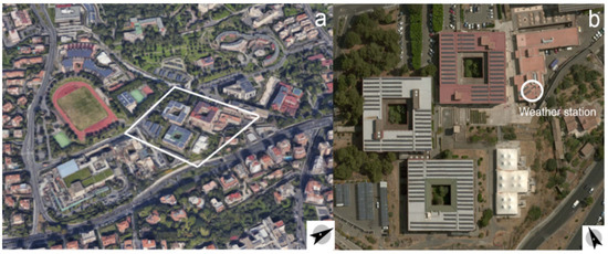 The investigated area is a part of the University Campus of the metropolitan city of Catania along the Mediterranean coast in Southern Italy (latitude 37°30′ North and longitude 15°04′ East). This area was selected for its peculiar urban texture, high population density, as well as urban density.
