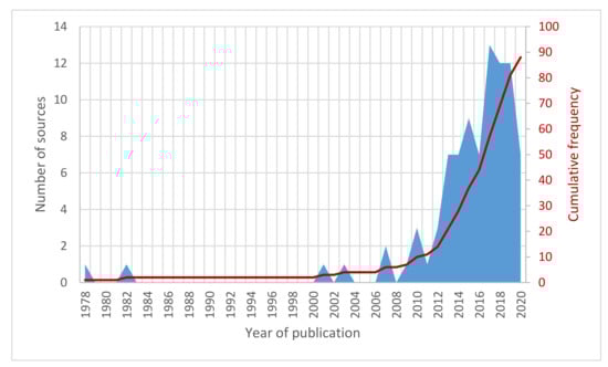 Distribution of the reviewed articles with regard to publication year.