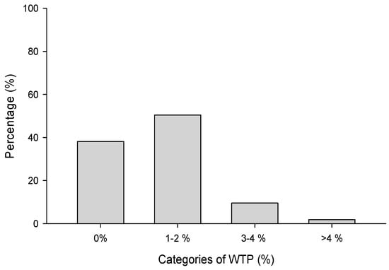 The follow-up survey results illustrated that about 62% of respondents expressed their willingness to pay one of the above percentages (1–2%, 3–4%, >4%). In comparison, 38% of the respondents expressed negativity at the prospect of paying a tax (0%) (Figure 7). The tax value for 1–2% of the income is the most appropriate as it is preferred by 50.5% of the respondents, while the values of 3–4% and 5–7% were less preferred (Figure 7).