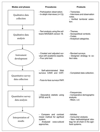 The strategy followed during the research (Figure 1) were designed on the basis of the proposals of De Leeuw [62], Dillman et al. [63], and Creswell and Clark [64], and enriched with the adaptation in an exploratory sequential design of the flow diagram suggested by Sinley and Albrecht [65].