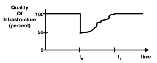 System state as a function of time, in response to a flood event, showing four degrees of recovery. [11].