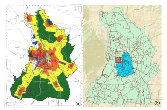 (a) Map of land use in Chiang Mai (408.09 km2) (source from: Department of Public Works and Town & Country Planning, 2021); (b) flooding (25.83 km2). Data from 1994, 1995, and 2005.