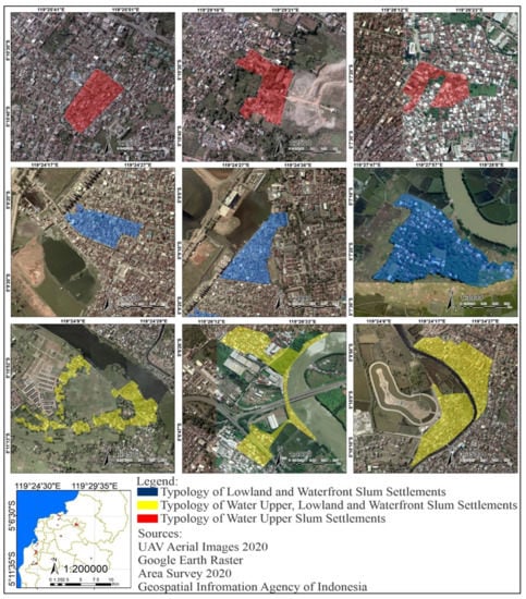 - Surya, B.; Ruslan, M.; Abubakar, H. Inequility of Space Reproduction Control and Urban Slum Area Management Sustainability (Case Study: Slum Area of Buloa Urban Village in Makassar City).). J. Eng. Appl. Sci. 2018, 13, 6033–6042. [Google Scholar]