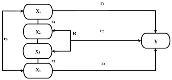 The multiple variable relationship model has four independent variables, X1, X2, X3, and X4, and one dependent variable, Y. To find the relationship between X1 and Y, X2 with Y, X3 with Y, and X4 with Y, and X1 with X2, X2 with X3, X3 with X4, and X1 with X4, by using a simple correlation technique. To find the relationship from X1, X2, X3, X4 to Y, we used multiple regression. This model shows four independent variables (X1, X2, X3, X4) and one dependent (Y). The analytical formulations used are as follows.