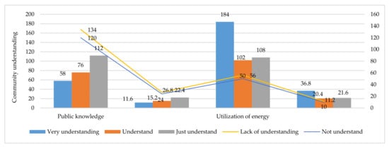 Utilization of renewable energy in economic enterprises developed by the community in slum settlement locations will have a multiplier effect on increased income and community welfare. Energy systems using renewable energy technology will have an impact on structural change [47,48] and the use of renewable energy, in addition to increasing community income, and also facilitates sustainable development [49,50]. Thus, it is necessary to innovate and utilize technology to address the fulfillment of energy needs in developing economic enterprises at the community level. Factors of household size, distance, climate, and topography affect and grow in energy demand [51,52]. Furthermore, the use of renewable energy will be able to create community independence and increase the productivity of economic enterprises in a sustainable manner. Thus, the community will play a role in regulating energy supply, determining tariffs for energy transportation, and decentralization of energy supply [53,54]. Community empowerment in slum settlements, based on the use of renewable energy, will encourage increased effectiveness and efficiency in the use of natural resources toward sustainable urban development. That is, low-income households are faced with the challenge of meeting energy sufficiency [55].