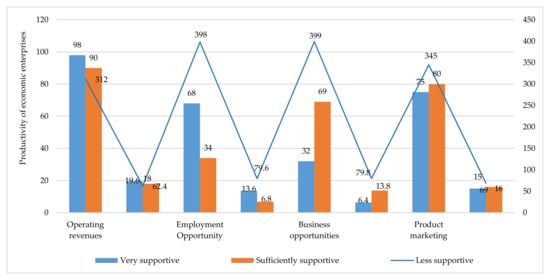 The main problems in developing community economic enterprises include first limited public access to funding, information, and markets; second, the relatively low capacity of human resources (HR) and community business institutions; and third, the low productivity of community businesses. Tambunan, T. [65] mentions the four steps needed to increase the productivity of the community’s economic enterprises, namely (1) carry out training programs regularly and at all economic business centers that focus on online marketing, entrepreneurship, management, and improvement of product quality and business efficiency; (2) provide alternative funding facilities with low interest rates and nonburdensome terms; (3) provide technical assistance (e.g., production, machine maintenance) and nontechnical assistance (e.g., marketing, promotion, distribution) directly at the production site for new entrepreneurs within the first one to two years of doing business; and (4) ensure availability of the raw materials most needed at stable prices.