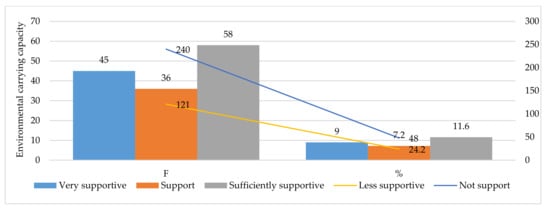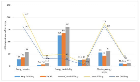 Economic activity is the action that involves the production, distribution, and consumption of goods and services at all levels in society. Economic enterprises developed by the community are expected to boost economic growth by creating new business and job opportunities, saving material costs, reducing price volatility, and increasing supply security, while reducing environmental pressure and impacts [56]. Three categories of community economic enterprises, among others, include (1) production in relation to activities that produce goods and services, (2) distribution, namely activities that distribute goods from producers to users or consumers, and (3) consumption, namely activities that utilize goods and services. These three things are closely related to the productivity of the community’s economic enterprises in relation to the use of renewable energy. Therefore, a supporting policy and regulatory framework is needed to accelerate the use of renewable energy and the efficient use of natural resources to support economic enterprises developed by the community [57].