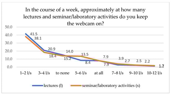 Although there is no such requirement for students, there have been situations in which they have preferred to keep their webcams turned on while participating in educational activities. Thus, the second research objective was to identify the approximate number of lectures and seminar/laboratory activities in which students keep their webcam on and the reasons that explain this behaviour.