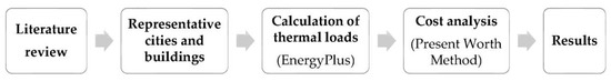 After collecting the simulation results and data, an economic analysis was conducted using the present worth method. Figure 2 shows the process flow of this study.