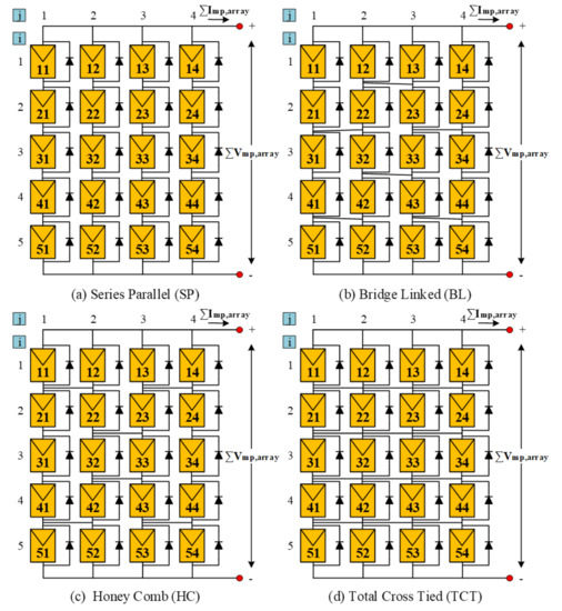 - IIyer, S.R. Performance Comparison of Zig-Zag and Su Do Ku Schemes in a Partially Shaded Photo Voltaic Array under Static Shadow Conditions. In Proceedings of the 2017 Innovations in Power and Advanced Computing Technologies (i-PACT), Vellore, India, 21–22 April 2017; pp. 17–22. [Google Scholar]